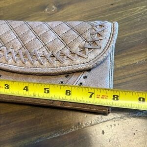 Mimco Taupe Mushroom Woven Quilted Wallet Grommet Flap Card Holder Clutch