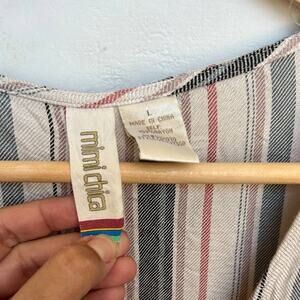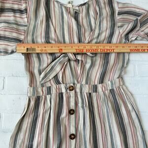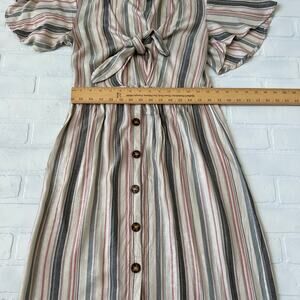Mimi Chica Beige Multi Colored Striped Tie Front Button Down midi Dress-sz L