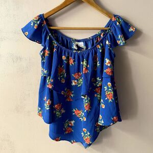 Mimi Chica Blue & Orange Floral Print Fluttery Top Size S NWT