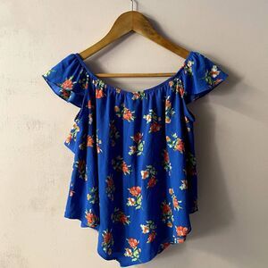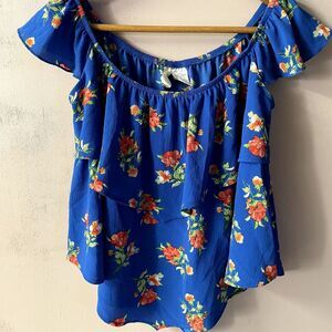 Cute blue fluttery top with an orange floral print all over! New with tags! Never been worn! Great for the Summer time! Feel free to ask questions or make an offer!