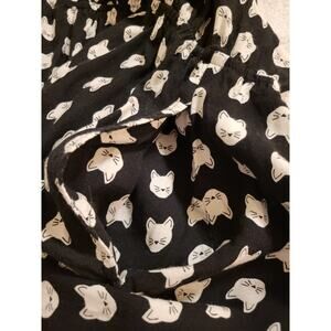 2X-Black with white kitties all over. ¾ sleeves with a button straps. Black button up front and elastic waist. Chest pockets and side pockets. Belt loops.