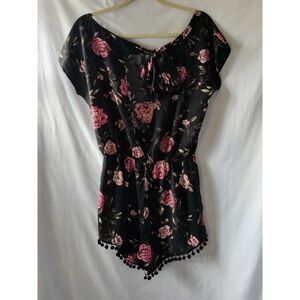 Mimi Chica Floral Elastic Waist Romper Short Sleeve Black Women's Size Medium