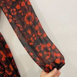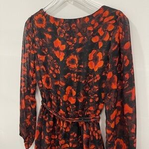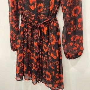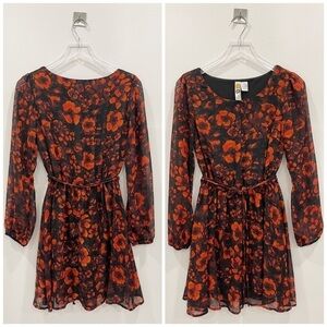 Mimi Chica Long Sheer Sleeve Floral Tie Waist Mini Dress Fit & Flare Red Black