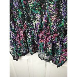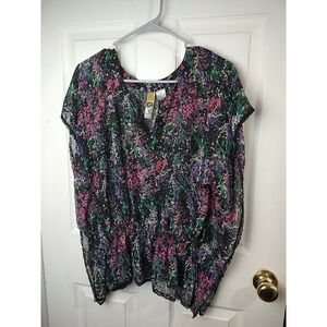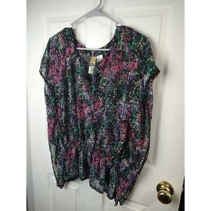 Mimi Chica semi shear cape styled pullover blouse in good condition. black floral print beach wear pullover, layer piece. lace trim.