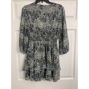 Mimi Chica Size L Floral Patchwork Sheer Smocked Midi Dress Feminine