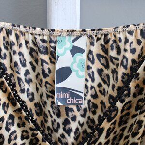 Mimi Chica VTG Y2K Tan Black Leopard Print Satin Babydoll Tank Top Size Medium