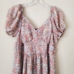 Mimi Chica Women's Mixi Dress Brown Floral Print Bohemian Size Large