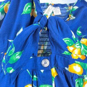 Mimi Chica XL Lemon Print Dress - Navy Blue with Pockets, Keyhole Front, NWT
