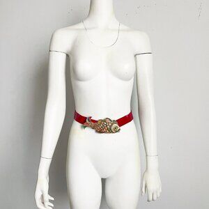 Mimi D In Koi Fish Belt Buckle Gold Metal Enamel Oversized Rare Vintage