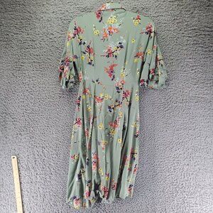 Mimi & Daphne Dress Womens Small Green Floral Button-Up 100% Viscose 3/4 Sleeves