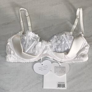 Mimi Holliday by Damaris Honeysuckle 1/4 Cup Plunge Silk Padded Bra in White and Cream (the lace and cup are two different shades, more evident in person/actual pcitures than stock photos). Size medium. New with tags. (Matching panty is also available for purchase. Search my closet for “Honeysuckle Star Knicker”.)