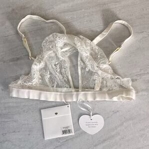 Mimi Holliday by Damaris Snowdrop Twist Halter Neck Bra in Ice White. Size Medium (see size chart pictured). New with tags. (Matching panty is also available for purchase. Search my closet for “Snowdrop Classic Lace Knicker”.)