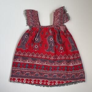 Adorable set! No visible wear, but there is one small printing flaw in the fabric on the front of the bloomers (pictured).