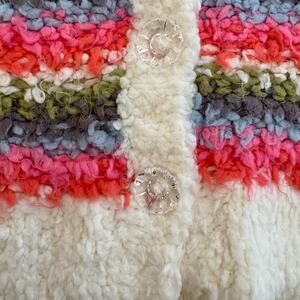 Mimi & Maggie Button Down Rainbow Stripe Fluffy Cardigan Sweater NWT