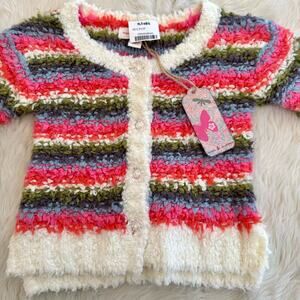 Mimi & Maggie Button Down Rainbow Stripe Fluffy Cardigan Sweater 2T NWT