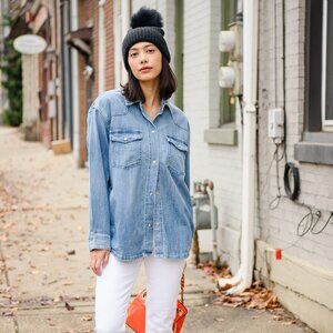 Meet our Mimi Overshirt, the perfect chambray layering piece that is both classic & versatile.