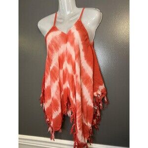 Mimi Shirt Womens Large Red White Tie Dye Cami Tassel Fringe Handkerchief Boho