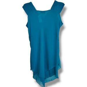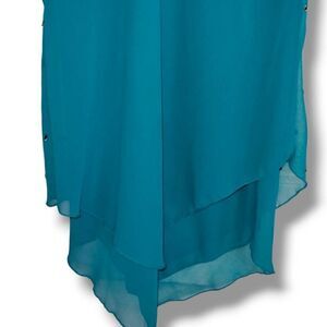 Mimi Singh Womens Dress Sz Small Turquoise Silk Chiffon Beaded Asymmetrical Hem