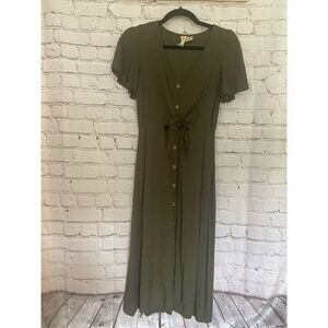 Super cute Deep army green Button up dress with tie closure detail Bin N