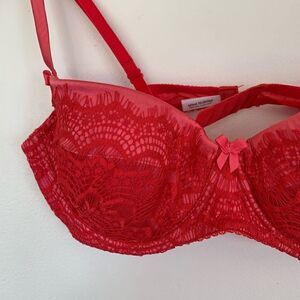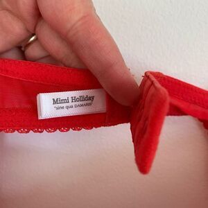 Mimi Holliday pink silk bra with red lace overlay and two tone straps