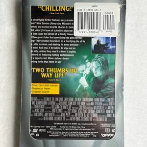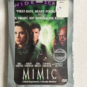 This is the hard-to-find original long box DVD release of Mimic, featuring Mira Sorvino, Jeremy Northam, Josh Brolin, F. Murray Abraham, and Charles S. Dutton. Released by Dimension/Miramax, this edition includes the early tall long-box packaging used only during the first years of DVD production, making it a collectible for horror fans and early-DVD collectors.