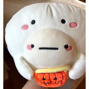 White super soft Mimicoco plush toy, Eggerton Ghost, white, Halloween theme, nose is light beige, weighted bottom.