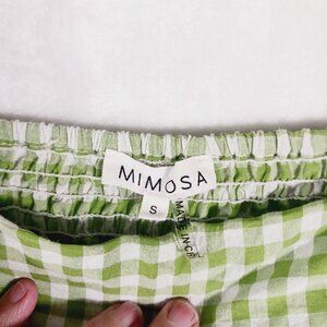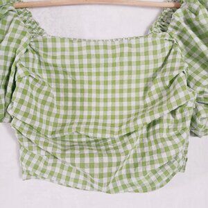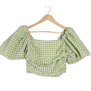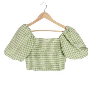 Mimosa, Crop Top, Green/White Gingham Check, Puffy Sleeves, Small Western Style