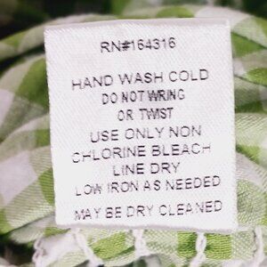 Care: Hand wash cold, do not wring or twist, only non-chlorine bleach if needed, line dry, low iron as needed. May be dry cleaned.