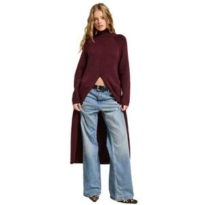 Mimosa Merlot Turtleneck Split Front Midi Sweater MD4063_C2