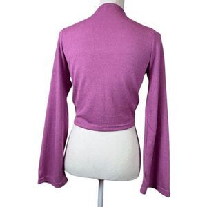 Mimosa Ruched Crop Drawstring Front Pinkish Purple Top Flair Sleeve Size Small. Excellent condition. See photos for details and measurements. View my closet to add other items and bundle to save with one shipping fee! Ruched drawstring is adjustable for higher or lower crop length.