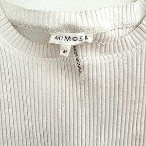 Cute and flattering off white Mimosa tank featuring a deep cut in the front and an upward-cut back for a stylish, modern look. Lightweight and versatile—perfect for summer, layering, or casual outings.
