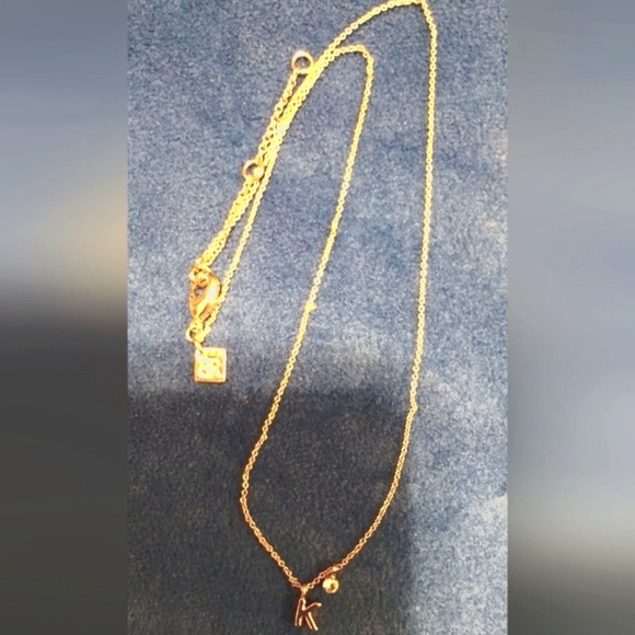 Banana Republic women's necklace This is a 16" long gold tone necklace with an initial "K" and a crystal next to it.