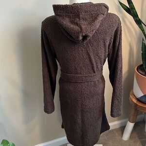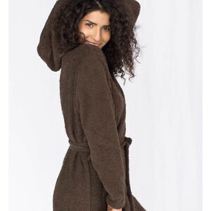 Mina Lisa Feather Knit Hooded Lounge Robe in Cocoa S