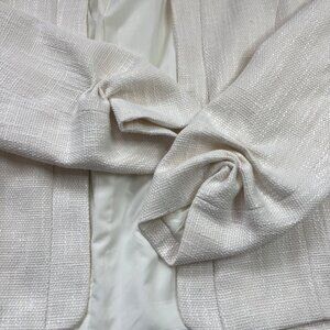 Elevate your wardrobe with the Mina Self Women's Blazer. This open-front jacket features a chic white textured design, adding a sophisticated touch to any outfit. Perfect for professional settings, it offers comfort and style in a versatile piece.