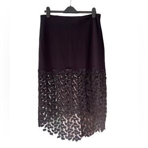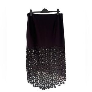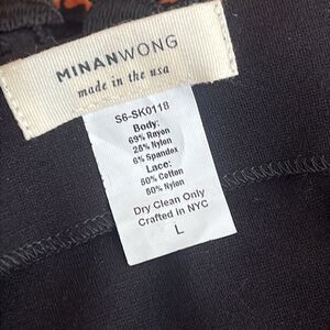 Minan Wong NYC Black Leaf Lace Pencil Skirt large