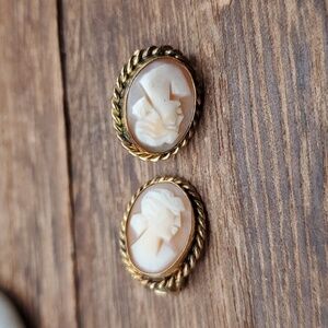 Minardi or minare 12k GF clip on carved cameo earrings E818