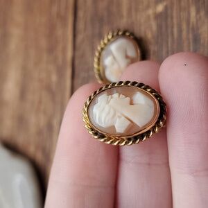 Keywords: cameo clip-on earrings, 12K GF earrings, vintage Minardi jewelry, carved cameo earrings, Minaré earrings, gold-filled vintage earrings, heirloom jewelry, non-pierced earrings, antique style earrings, collectible cameo jewelry
