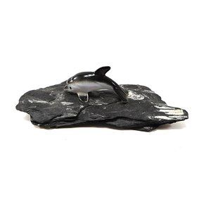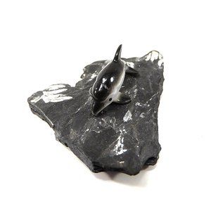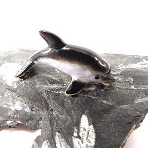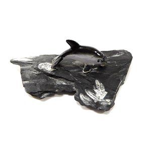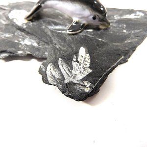 Minature Porcelain Dolphin Figurine on Hand Painted Slate