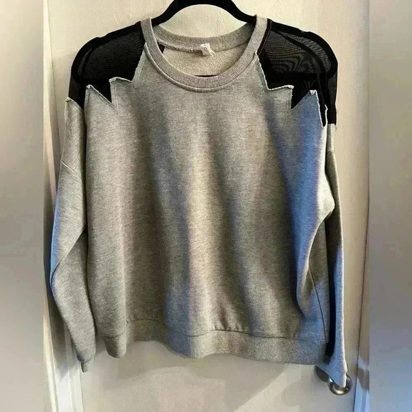 Woman’s sweatshirt black sheer shoulders 100% cotton