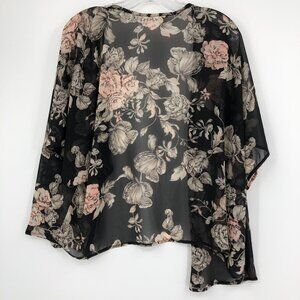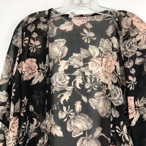 Mind Code Black Floral Cardigan | Elbow Length Sleeves