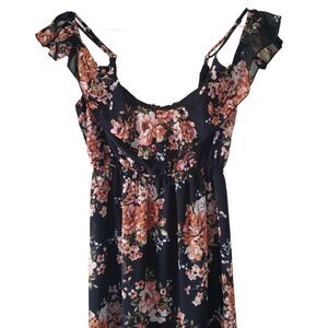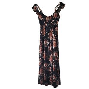 Mind Code Black Floral Off Shoulder Maxi Dress
