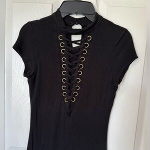 Chic black mini dress with lace-up front. Perfect for stylish outings. #4