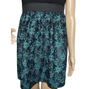 Mind Code Dress Womens Size Medium Black & Teal Lace Elastic Waist Y2K Retro Sty
