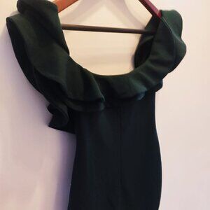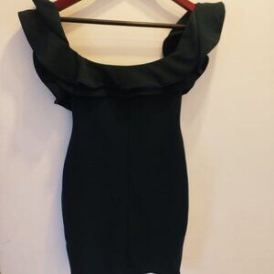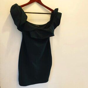 Mind Code Green Mini Dress Size S 95% Polyester, 5% Spandex Green Color Ruffle Neckline Strapless