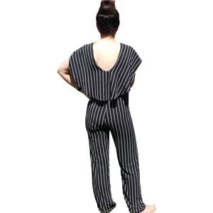 Mind Code Jumpsuit Wide Leg Navy Blue and White Stripes Size Medium