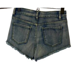 Mind Code Lace Detail Distressed Raw Hem Trim Short Denim Jean Shorts Women Sz S