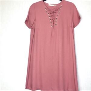 Mind Code Lace Up Front Short Sleeve Tunic Size Small
