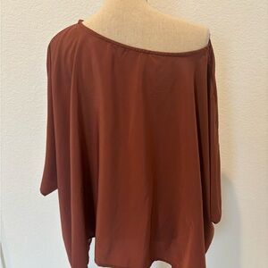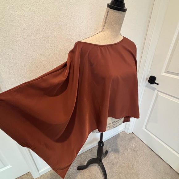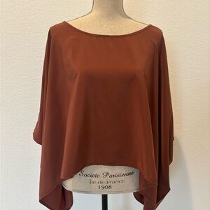 Chic rust cape blouse. Flowy silhouette. Ideal for versatile styling.
