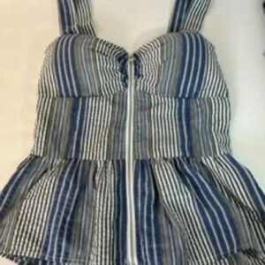 Mind Code Zip Front Blue Striped Bustier Top Women's Sz Medium