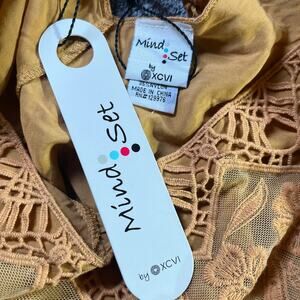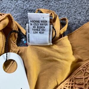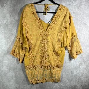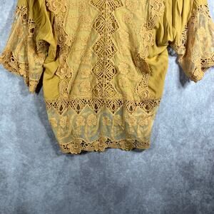Mind Set By XCVI Top Womens Large Yellow Lace Crochet V-Neck Boho Festival NEW